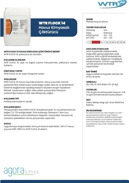 WTR FLOCK ÇÖKTÜRÜCÜ 20 LT HAVUZ KİMYASALI