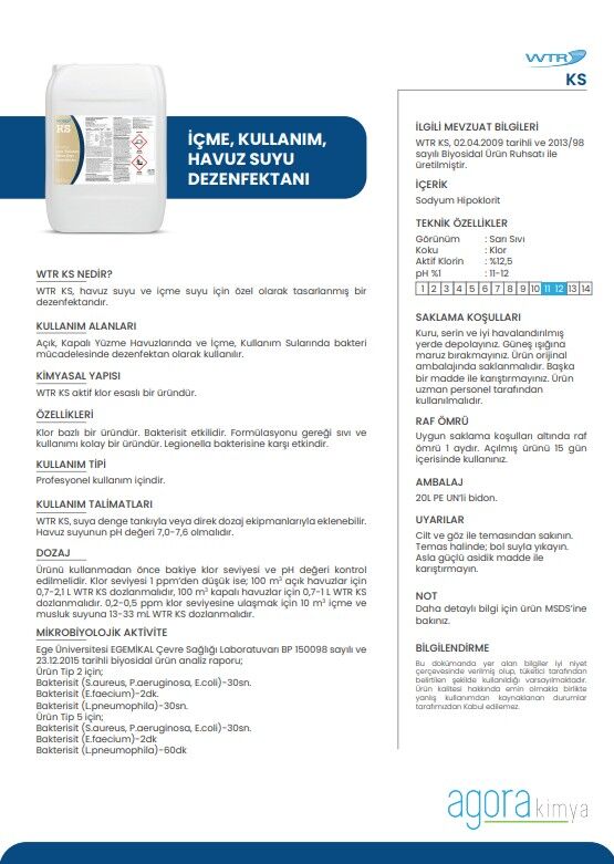 WTR KS | İçme , Kullanım ve Havuz Suyu Dezenfektanı 20lt/ 25 KG